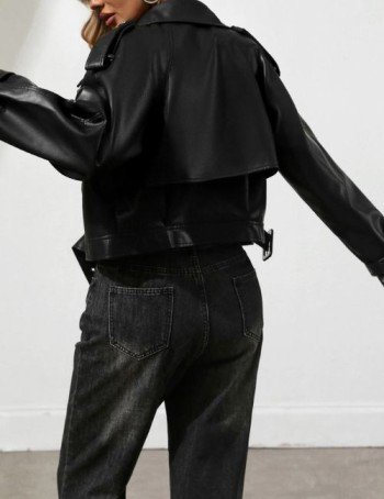 Upgrade your wardrobe with a Black Faux Leather Biker Jacket for Women that blends edgy style with modern elegance.
