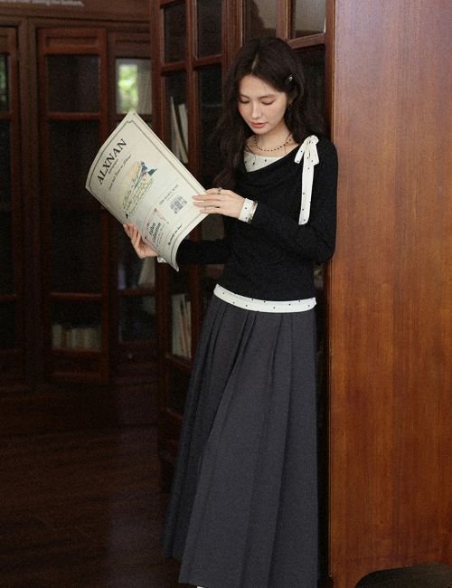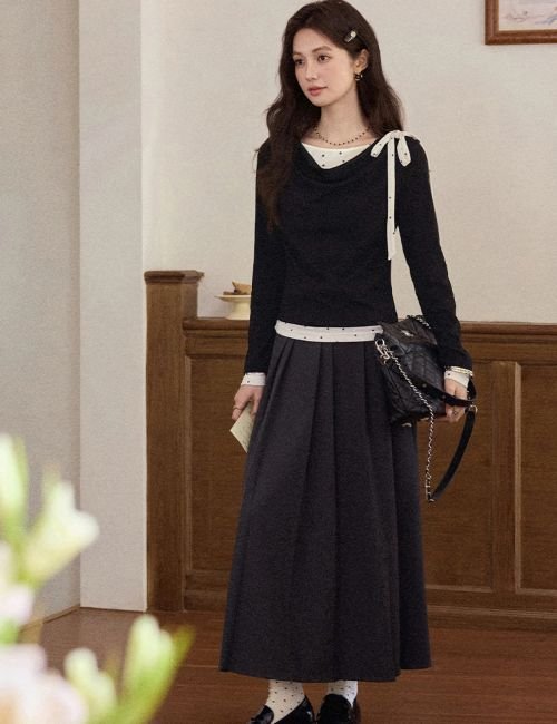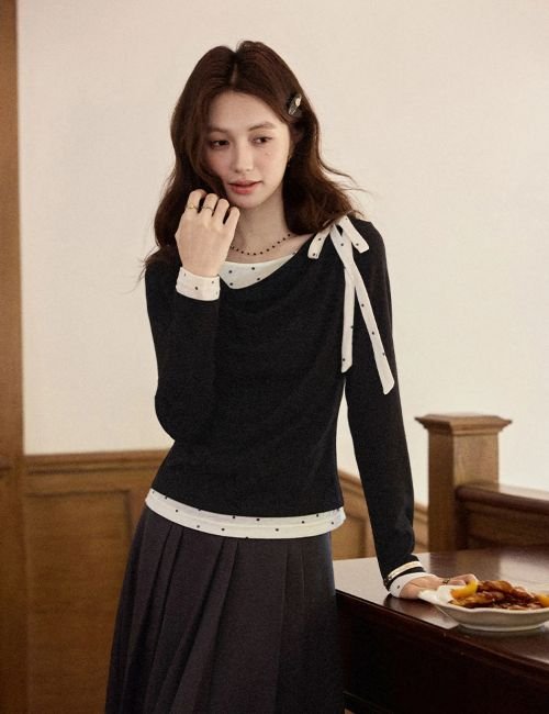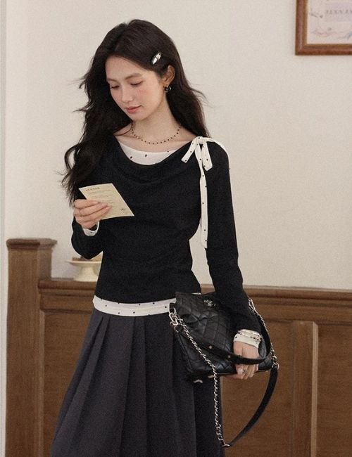 casual long sleeve t shirt, bow knot t shirt, stylish black t shirt, trendy black tee