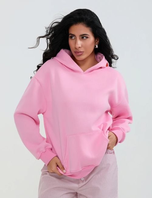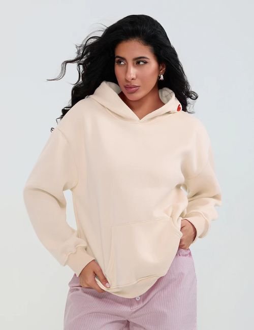 Available in multiple sizes and stunning shades, from hot pink to ivory and beyond. Love neutral tones? The ivory oversized hoodie brings clean, elegant energy to your look.