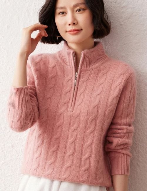 Half Zip Cashmere Cable Knit Sweater For Women