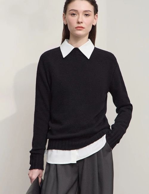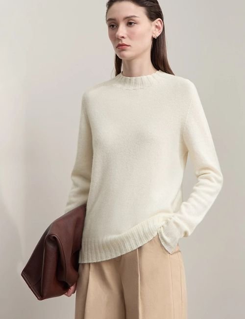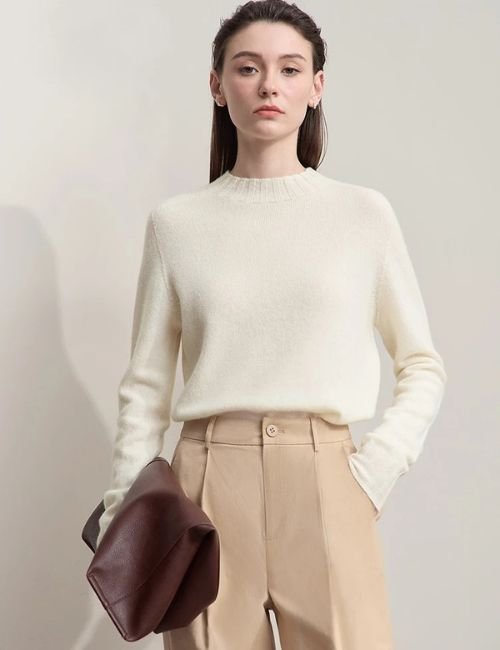 Stay warm and effortlessly chic this season with our Knitted Wool Mock Neck Pullover Sweater, your new go-to for comfort, confidence, and coziness. Crafted for women who value both style and practicality, this mock neck sweater blends soft warmth with a flattering fit that feels just right, not too tight or bulky.