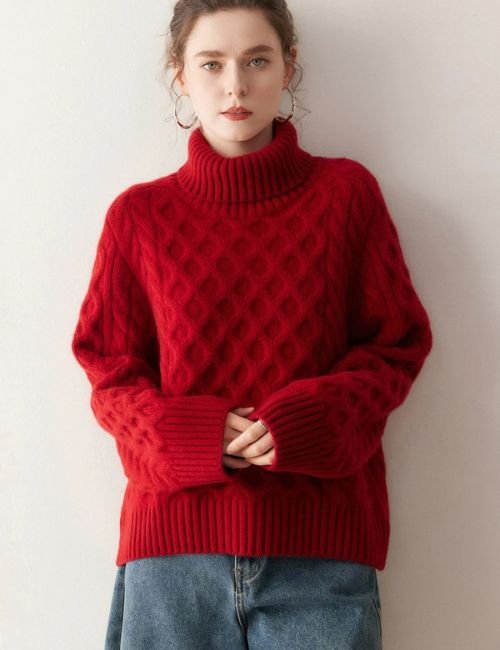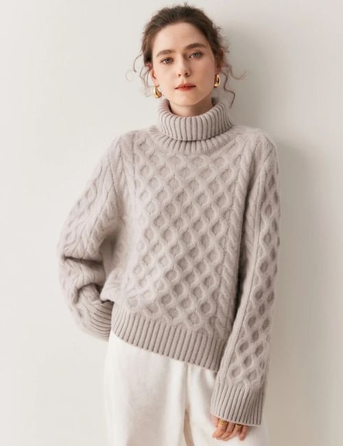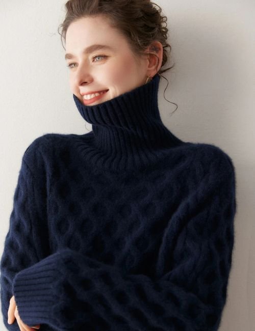 Accessorize with a bold necklace or oversized scarf to highlight the turtleneck detail.