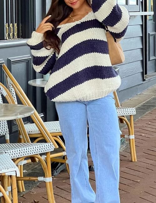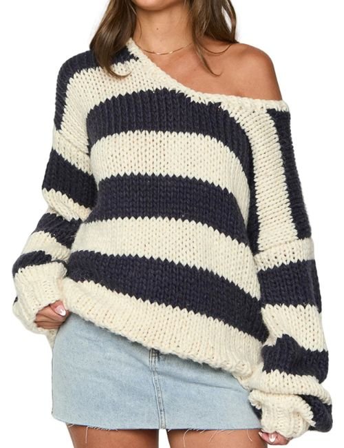 women's chunky knit sweater, long sleeve sweater, drop shoulder sweater, pullover knitted sweater