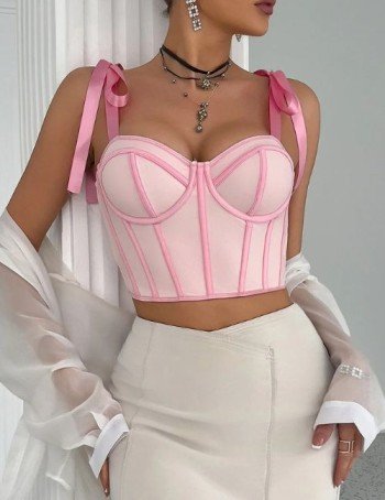 Upgrade your wardrobe with the Ribbon Strap Corset Crop Top for Women, a perfect blend of elegance and modern style.