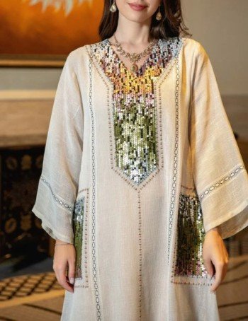 Ideal for evening events, parties, or festive gatherings, this kaftan offers effortless glamour with minimal styling.