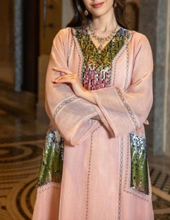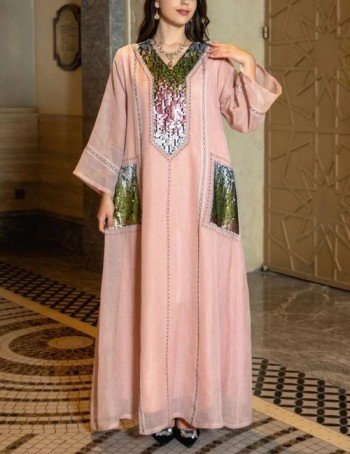 Discover timeless elegance with our Sequins V Neck Moroccan Kaftan Dress For Women, designed to blend traditional artistry with modern glamour.