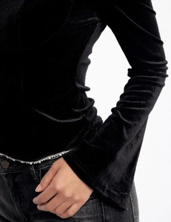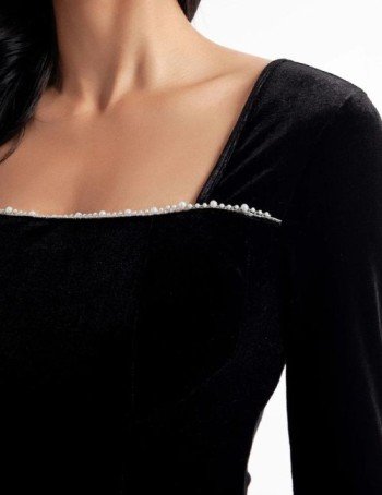 Enjoy a blend of elegance and comfort with this lightweight black velvet top crafted for warm weather. The square neckline adds a flattering, modern touch, while the soft, stretchy velvet offers a breathable fit ideal for summer outings.