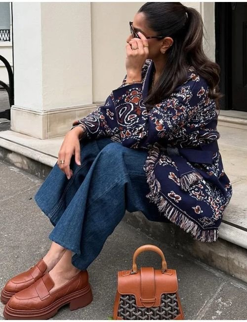 • Layer over a fitted turtleneck and high-waisted jeans for a cozy fall outfit.