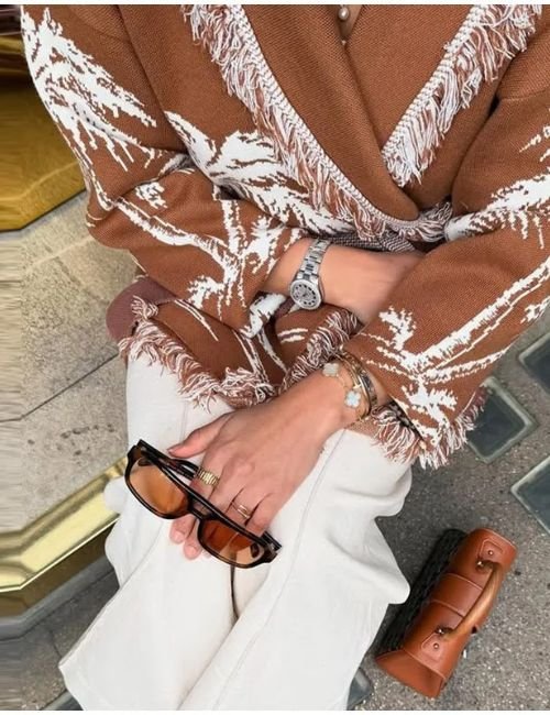 This Tassel Patchwork V Neck Cardigan Sweater is ideal for women looking for a stylish yet practical wardrobe staple. Whether you’re enjoying a coffee date, running errands, or heading to a casual office setting, it brings effortless elegance to every occasion.
