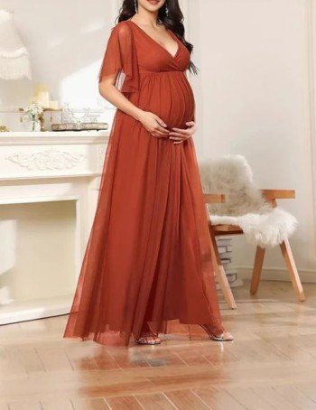 Capture your pregnancy glow beautifully with a V-Neck Maternity Photoshoot Dress For Women designed to flatter, support, and photograph effortlessly.