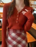 Be the first to review “Winter Button Cotton Knitted V Neck Sweater”