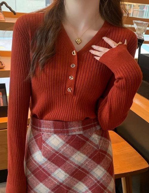 cozy button knit sweater, soft cotton v neck sweater, casual knitted pullover sweater, slim fit sweater