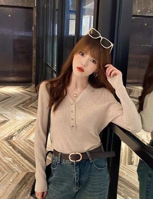 • Pair your V Neck Sweater with high-waisted jeans and ankle boots.