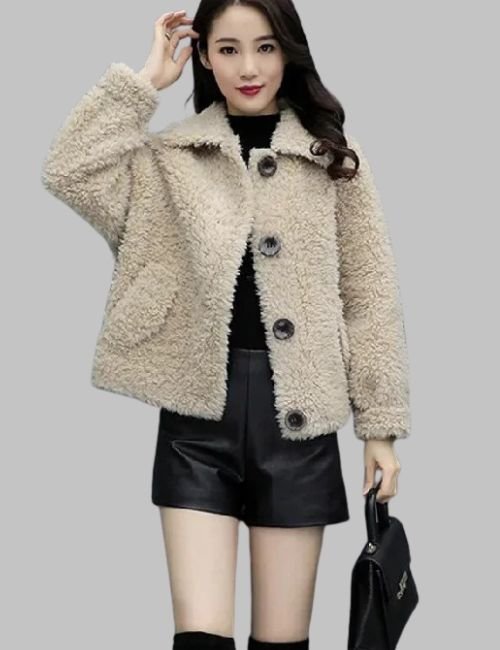 winter short lamb wool fleece jacket for women, lamb wool fleece winter jacket USA, short fleece jacket for cold weather, women’s warm fleece outerwear