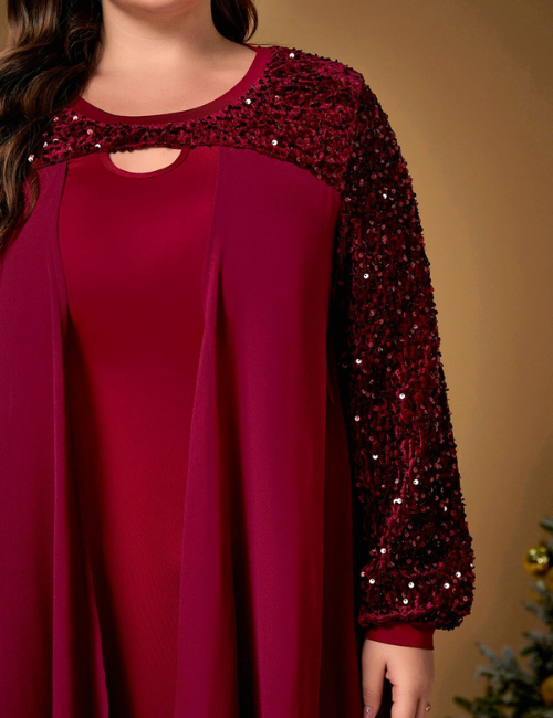 Plus Size Formal Burgundy Christmas Velvet Dress, Women Christmas Dress Sparkly Midi, Christmas Dress Women Party Outfit, Holiday Velvet Sequin Dress