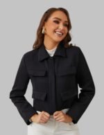 women cropped jacket, slim cropped coat for women, elegant solid long sleeve jacket, fashion streetwear outerwear, trendy cropped jacket outfit