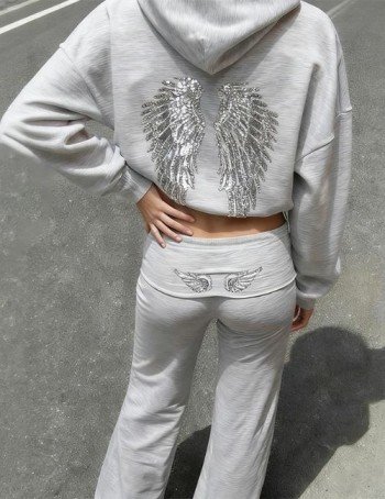 Overview of the Women’s Grey Angel Wings Embroidered Hoodie