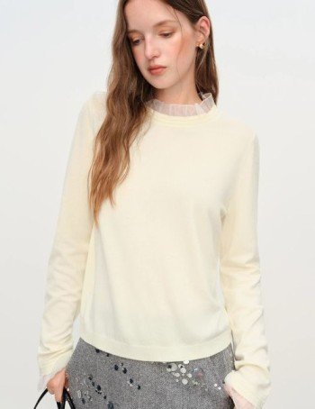 Mock neck tops have become a wardrobe essential for those who love minimal yet refined fashion. This ruffle trim knit version adds a feminine twist to the classic design, making it perfect for any occasions.