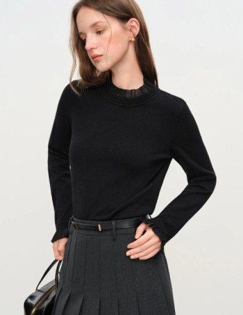 Explore our Women Mock Neck Ruffle Trim Knit Top, because your wardrobe deserves timeless comfort and effortless style.