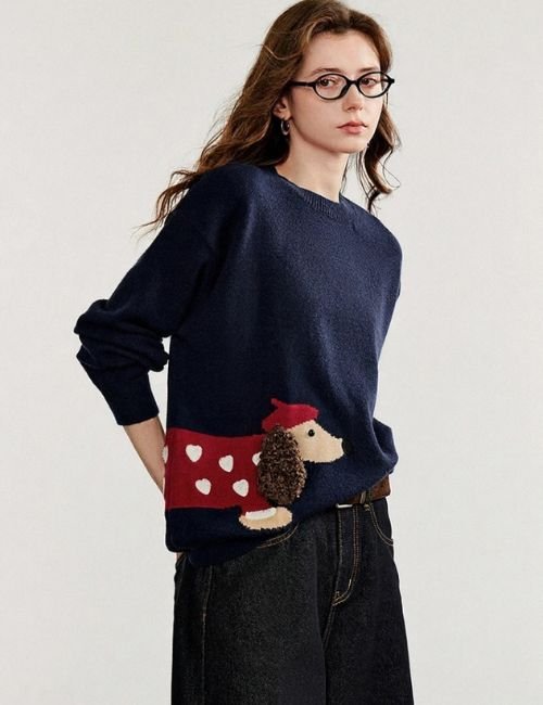 Bring comfort and charm to your everyday style with the Women Round Neck Knitted Pullover Sweater, a cozy yet trendy piece every woman will love to have in her wardrobe. Designed with a playful dog print and soft knitted fabric, this pullover blends fashion with comfort, making it a go-to choice when you want warmth without sacrificing style.