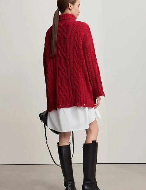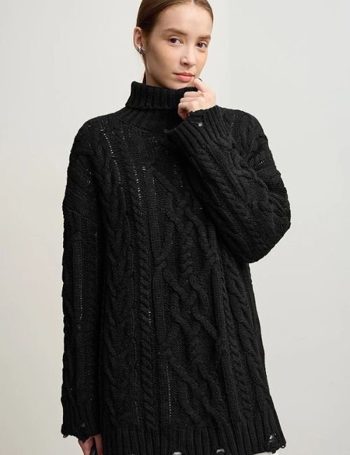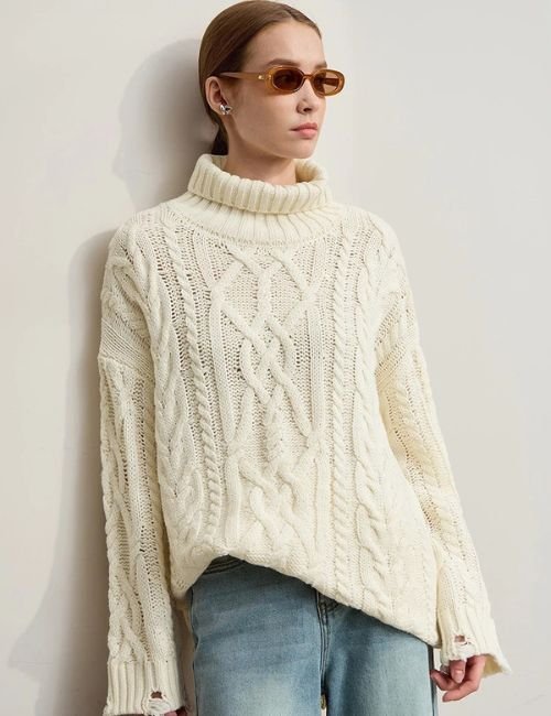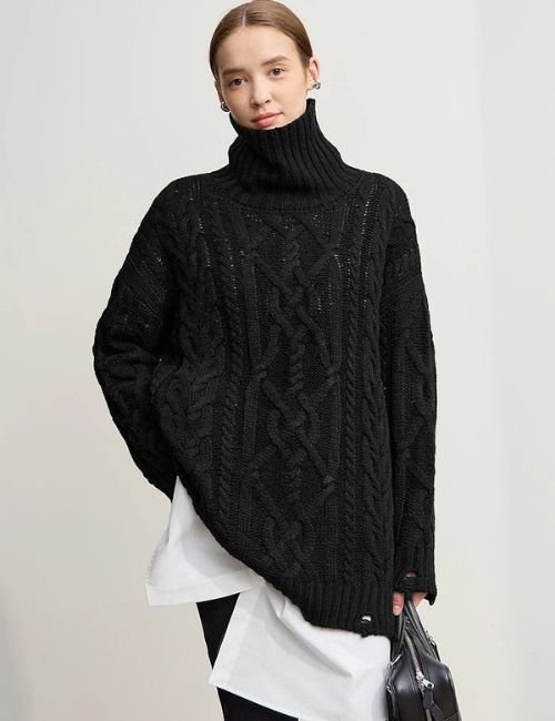women’s cable knit sweater, turtleneck knit sweater, winter pullover sweater, women long sleeve sweater