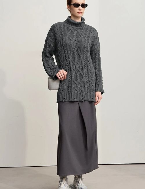 • Create a cozy chic vibe by pairing it with high-waisted trousers and heeled boots.