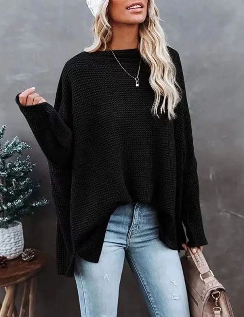 Make your cold-weather outfits stand out with this Women’s Asymmetrical Long Sleeve Knit Sweater. Soft, stylish, and endlessly wearable, it’s the piece you’ll reach for again and again.