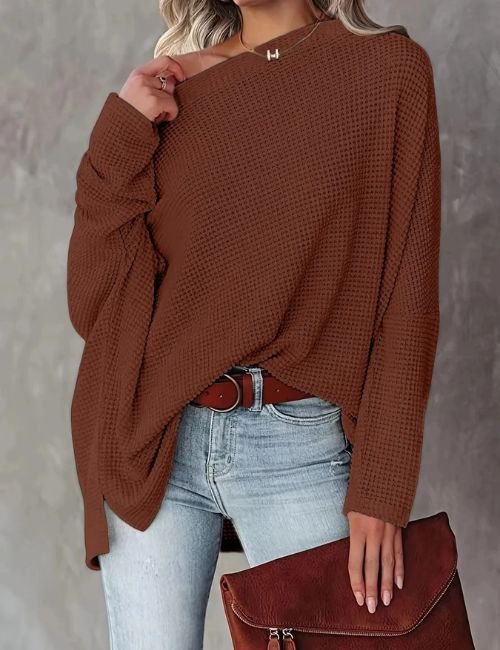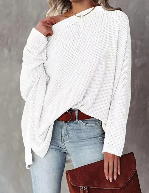 Stay cozy and stylish this season with the Women’s Asymmetrical Long Sleeve Knit Sweater, your go-to piece for effortless everyday style and comfort. Whether you’re grabbing a coffee, heading to the office, or meeting friends for brunch, this asymmetrical sweater transitions seamlessly from day to night.