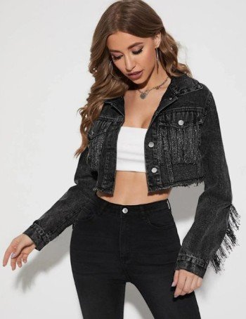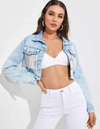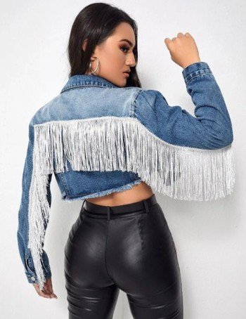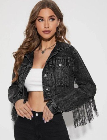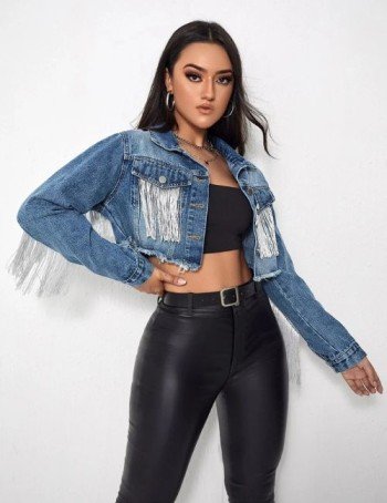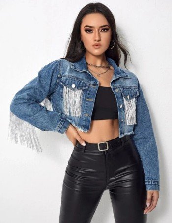 Cropped denim jackets are a timeless wardrobe staple that never go out of style. This season, the tassel and fringe trend brings a fresh twist, combining playful movement with classic denim texture.