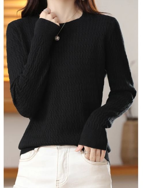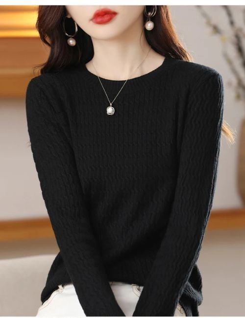 long sleeve crewneck sweater, women pullover sweater, cashmere crewneck sweater, solid color crewneck sweater