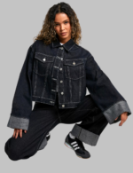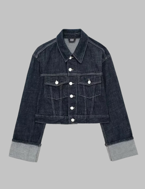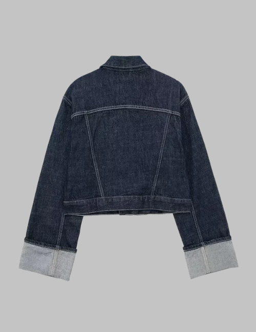 Stylish indigo denim jacket featuring turn-up cuffs, a lapel neck, and a single-breasted button closure. Designed with functional pockets, this versatile piece is perfect for casual outings, layering, or adding a vintage touch to your wardrobe.