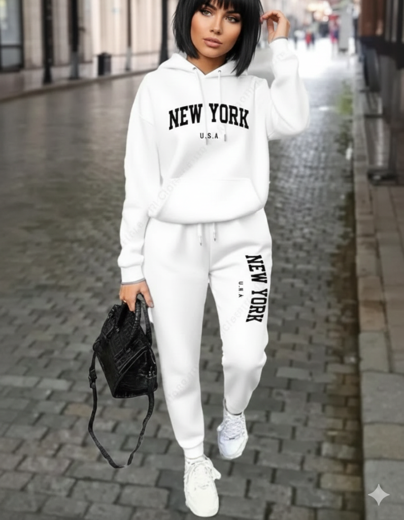 Explore our New York Print Athletic Hoodie to complement your short wolf hair.