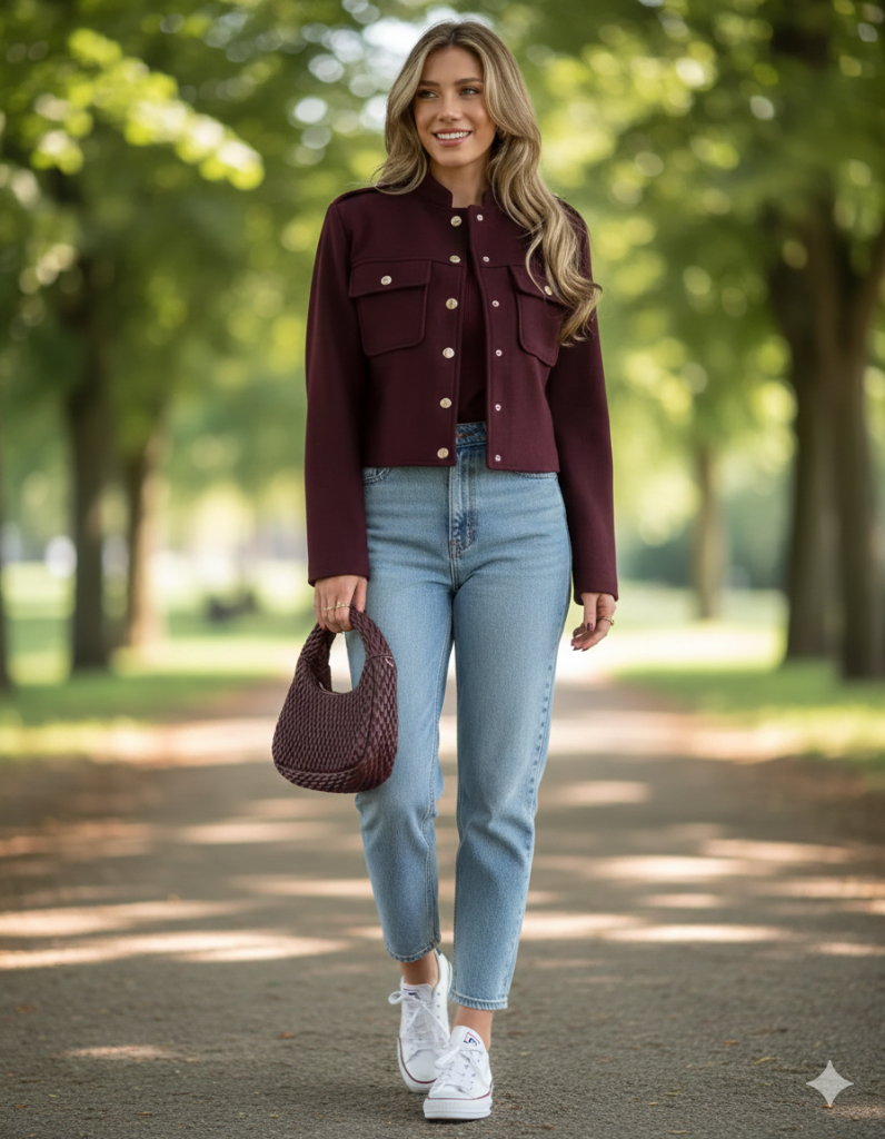 Neutral-toned or cropped bombers pair well with jeans for casual outings and tailored pants for office looks.
